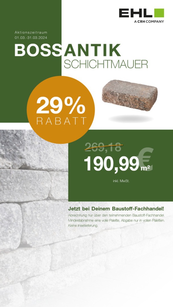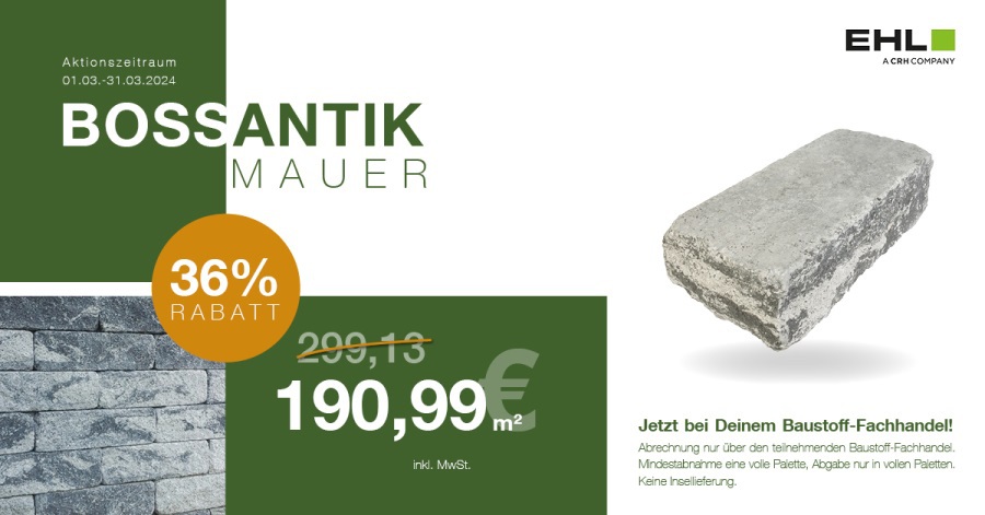 BOSSANTIK-MAUERBLOCK, gebrochene Kanten