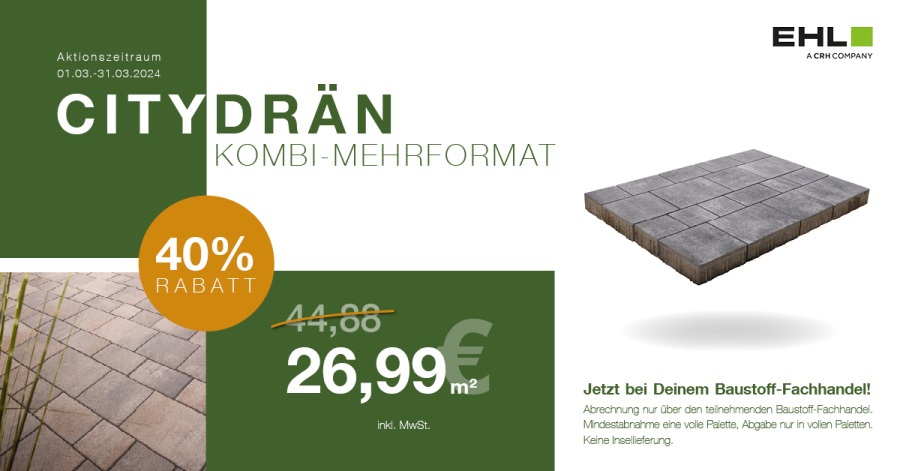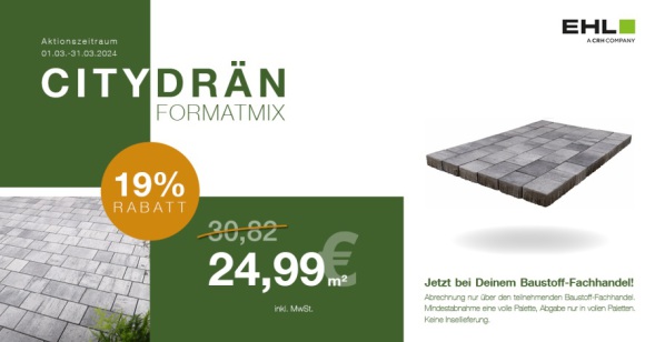 Dank der angeformten Doppelnocken ist eine Fläche mit dem CityDrän Formatmix besonders verschiebesicher und somit die perfekte Wahl für Einfahrten und PKW-Parkflächen.